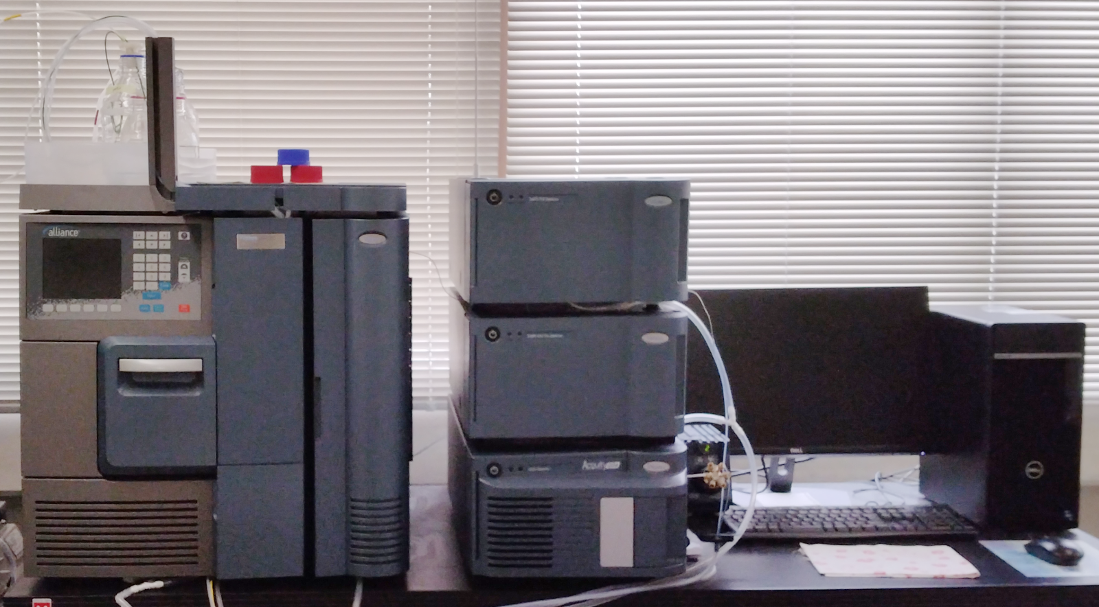 HPLCを用いた代謝疾患マーカーの研究の他、岡山大学自然生命科学研究支援センター分析計測分野と共同して、LC-MS/MSによる代謝物質の測定研究も行っています。最近、当ラボにもMSが導入され、LC-MSによる分析が可能になりました。